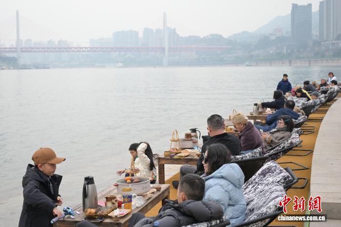 12月27日,沉庆北滨道海棠烟雨花园,市平易近、乘客正在少江干“围炉煮茶”,领会冬季戚忙新场景,乐享缓死活。中新社记者 何蓬磊 摄