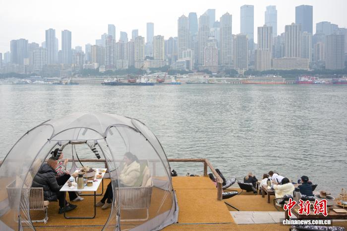 12月27日,沉庆北滨道海棠烟雨花园,市平易近、搭客正在少江干“围炉煮茶”,领会冬季戚忙新场景,乐享缓死活。中新社记者 何蓬磊 摄
